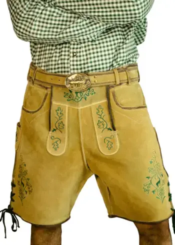Traditional German lederhosen is made up of Calfskin or tanned deer leather due to which pants become soft but very tearproof.